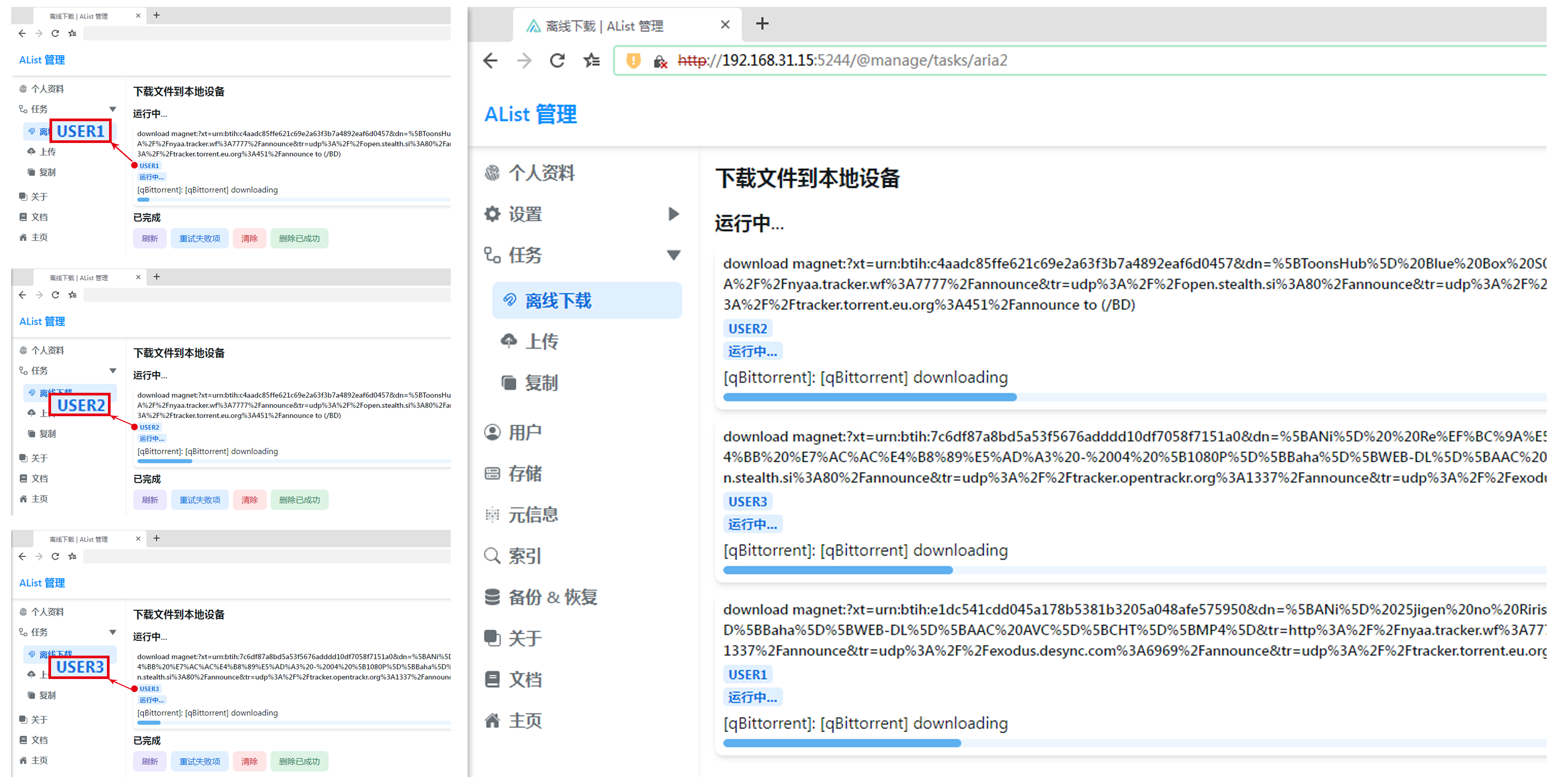 - AList needs to be upgraded to v3.39.1 version, and admin can also view the user's task progress and operations