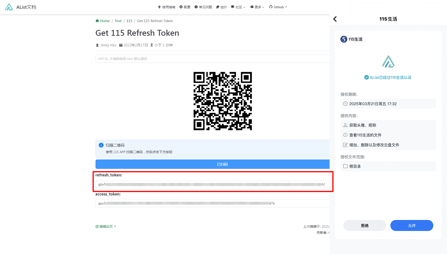 Scan the QR code with your phone and click the blue button to get refresh token