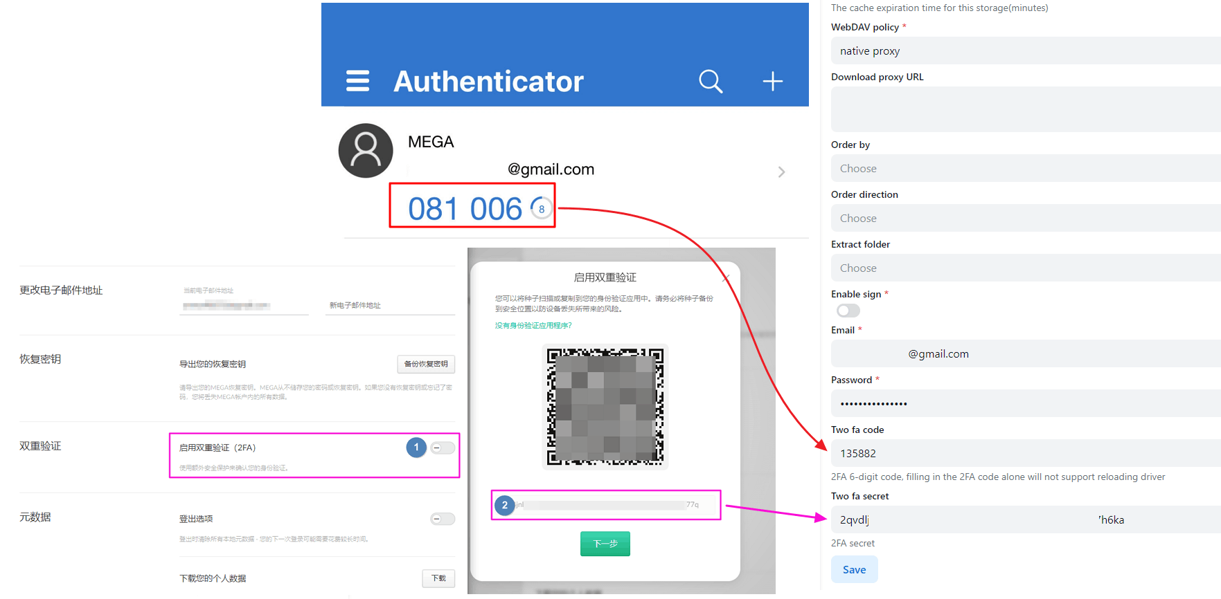 Click to enable Enable two-factor authentication (2FA) and then see a QR code, there is a string of letters below the QR code, This is Two fa secret, please record before scanning the code and do not lose it, Should the Two-factor authentication (2FA) secret be lost, you can unbinding and then retrieve a new 2FA QR code for setup.
